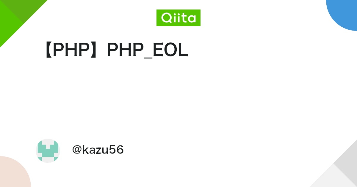 PHP_EOLは改行を表していて、環境によって自動で改行コードを切り替えてくれる。 OS 改行コード 改行コード文字 Windows CRLF \r\n Linux,Unix,MACOS10 LF \n 使い方例 echo 'こんにちわ',PHP_...